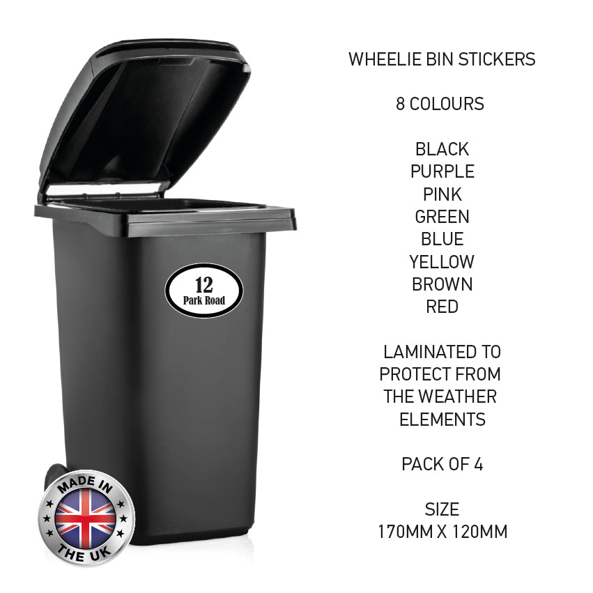 Personalised Wheelie Bin Number and Street Name Oval Stickers
