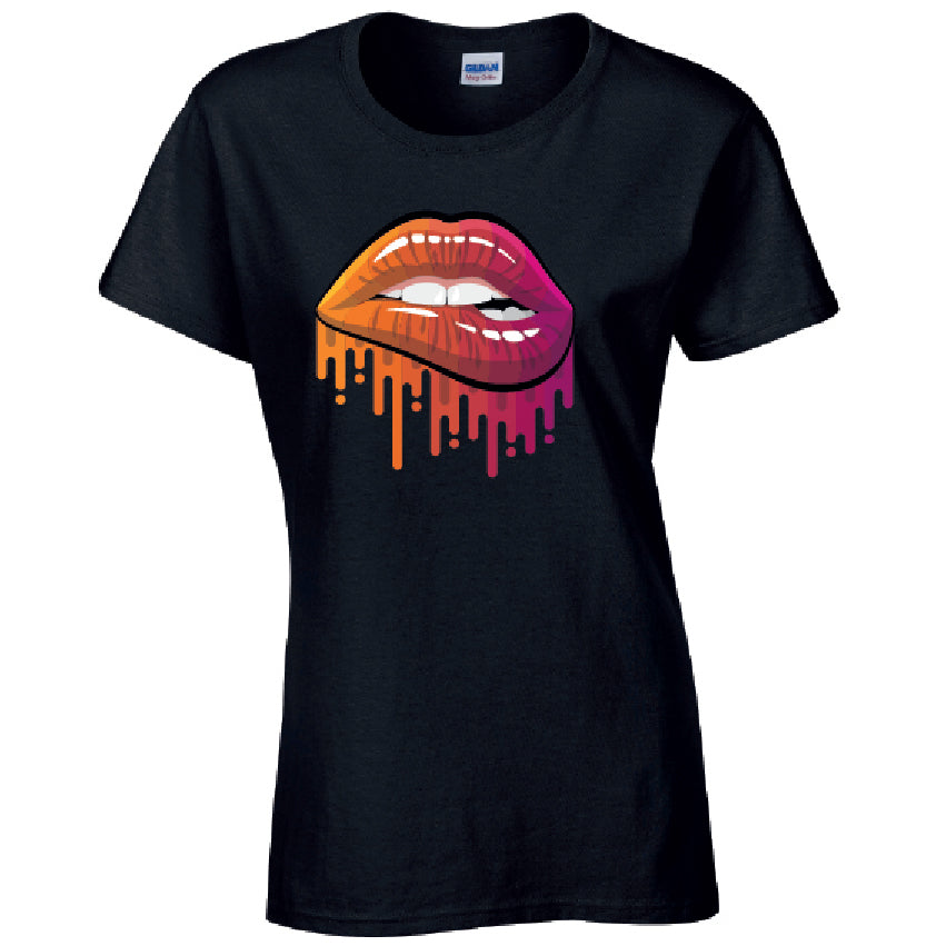 Orange and Pink Lips Ladies Cotton T-Shirt Available in Black Grey and White LT20