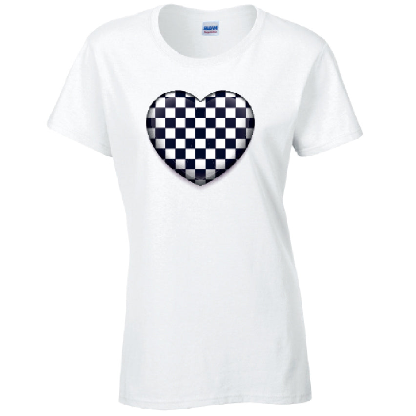 Black Chequered Heart Ladies Cotton T-Shirt Available in Black Grey and White LT23