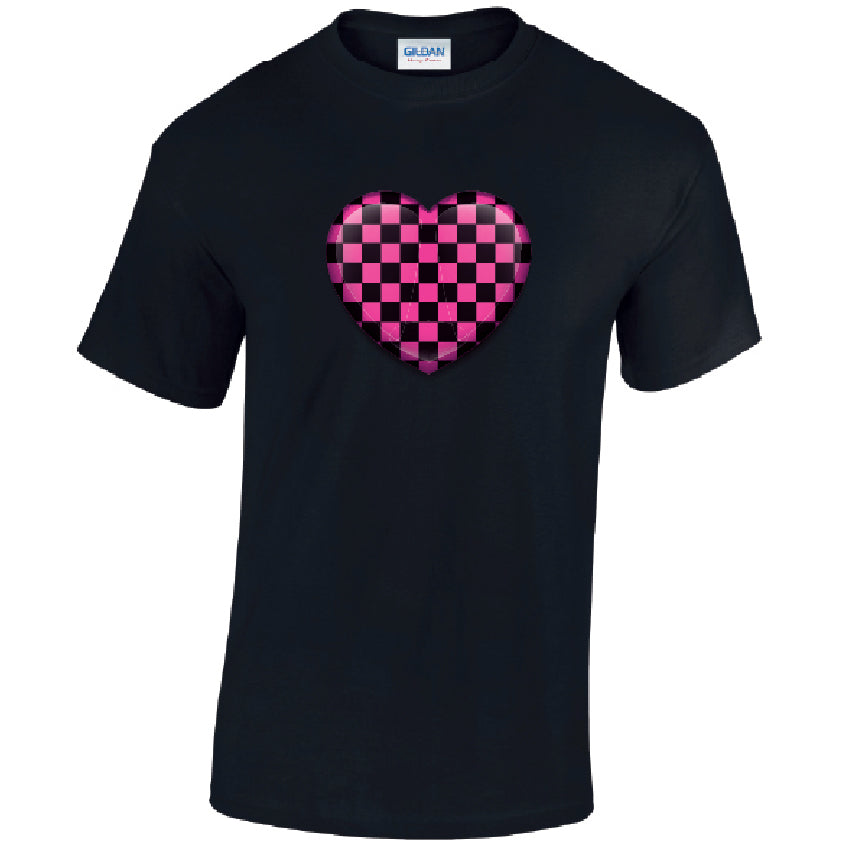 Pink Chequered Heart Mens Cotton T-Shirt 5 sizes 3 Colours Available Printed MT25