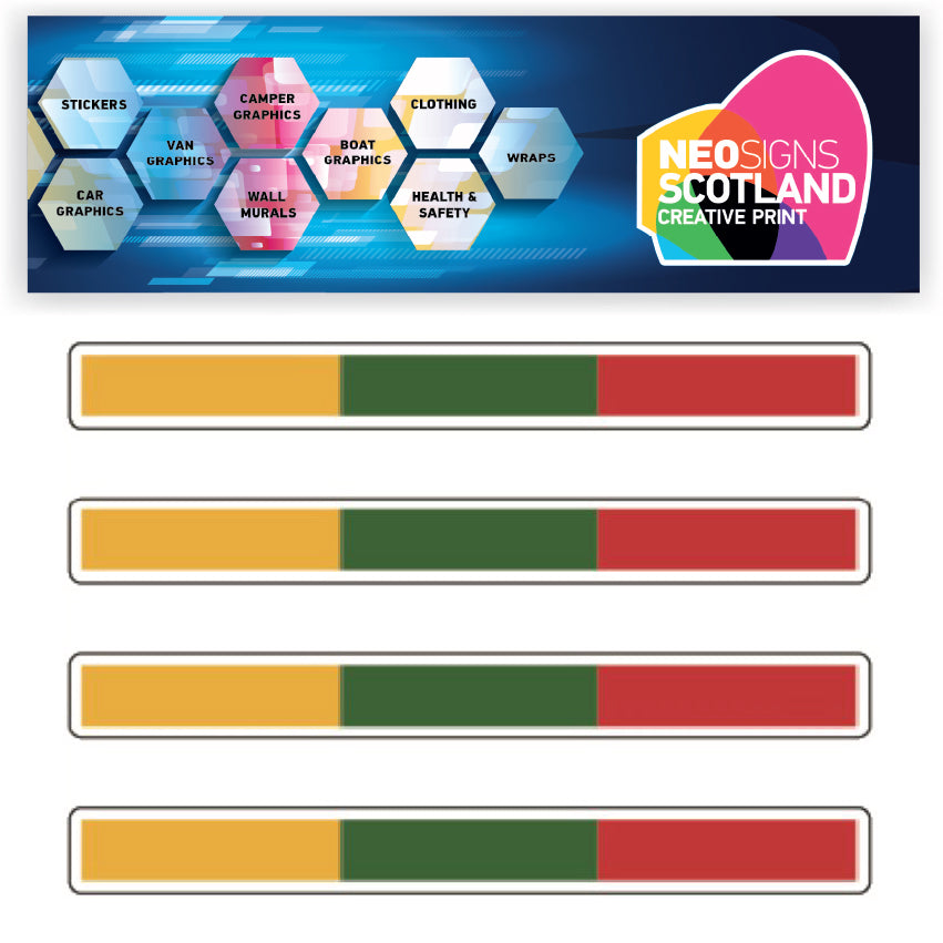 All our stickers are printed on a HP Latex machine using only original oem HP inks